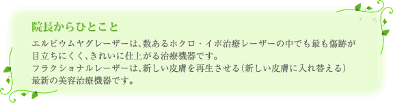 |院長からひとこと|エルビウムヤグレーザーとは|フラクショナルレーザーとは|