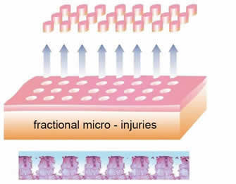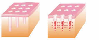 フラクショナルレーザーとは、レーザーにて皮膚に極小のドット(点)状の穴を開け、照射した部分の皮膚(組織)を剥がして、創傷治癒力(傷を治す力)により新しい皮膚を再生させる(新しい皮膚に入れ替える)最新の美容治療機器です。