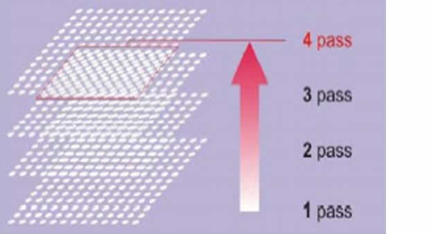 1ショットで深部までレーザー光が達するのではなく、照射回数を増やすことで熱の効果を高め、コラーゲンの再生を促します。