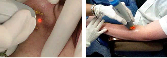 また、皮膚に接触照射することで、血管病変や毛などを効率良く治療できます。