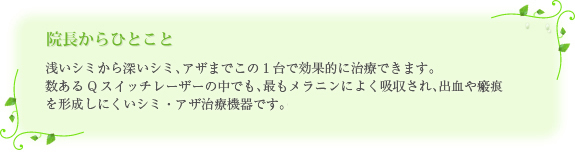 |院長からひとこと|Qスイッチルビーレーザーとは|適応症状|治療の流れ|