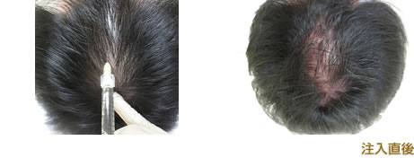頭皮に投与することで、毛母細胞および周囲幹細胞が刺激され、頭皮・毛髪の再生を促します。