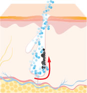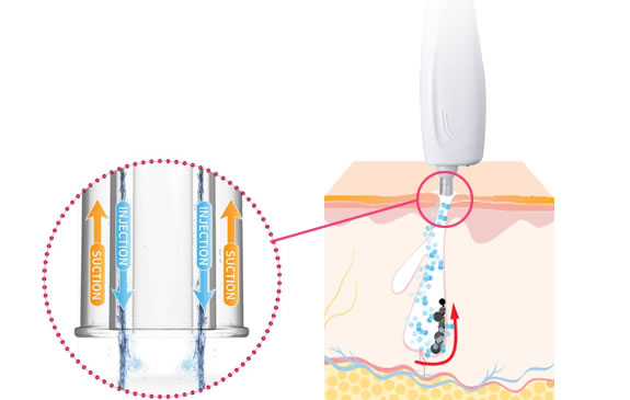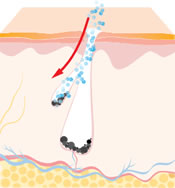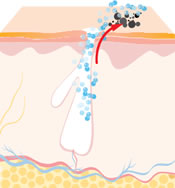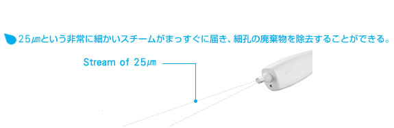 イナクールは、25μm(0.025mm)のきわめて細かい水蒸気を使用し、有効成分を毛穴に