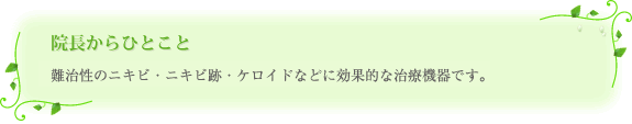 難治性ニキビ・ニキビ跡、ケロイド、肥厚性瘢痕、小ジワなど