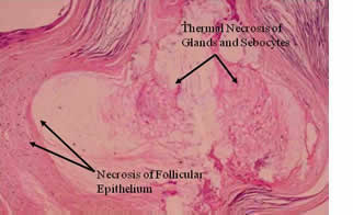その結果、真皮上層に熱エネルギーを集め、皮脂腺に熱損傷を与えることによって