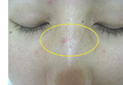 20歳代前後の若年者(女性に多い)の顔にしばしば繰り返すほてりや赤みとして発症します。 やがて30〜50歳代に鼻や頬を中心に持続性の紅斑(赤み)、毛細血管拡張(細かい毛細血管が目立つ)、丘疹(ボツボツ)、膿疱(ニキビのような膿をもった白いボツボツ)などを生じる病気を言います。 症状が長引くと悪化して、鼻瘤(鼻が赤く腫れて、皮膚の表面が硬くボコボコして盛り上がっている状態)をきたすことがあります。 |