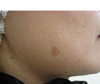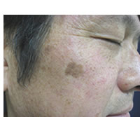 中年以降によく見られる褐色の色素斑(シミ)です。日光(紫外線)にあたりやすい顔や前腕部、手背、上背部に多くみられます。