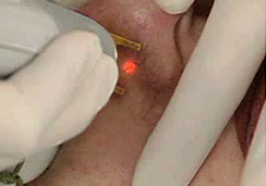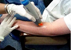 2.レーザーはお肌から離して照射します。 痛みはなく暖かいシャワーを浴びているような感じです。トリートメントにかかる時間は20分ほどです。 もちろん事前の麻酔も不要です。