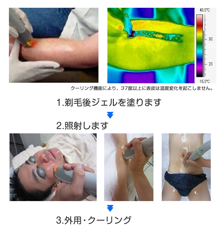 - また、フルエンスを高く設定することにより、うぶ毛の処理も可能。